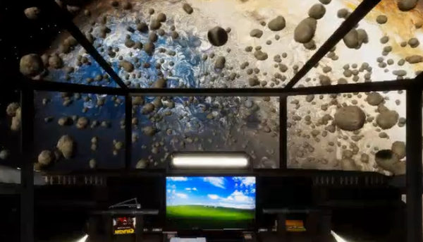 In this 3d simulator you have the ability to control a spaceship and fly around an asteroid field.